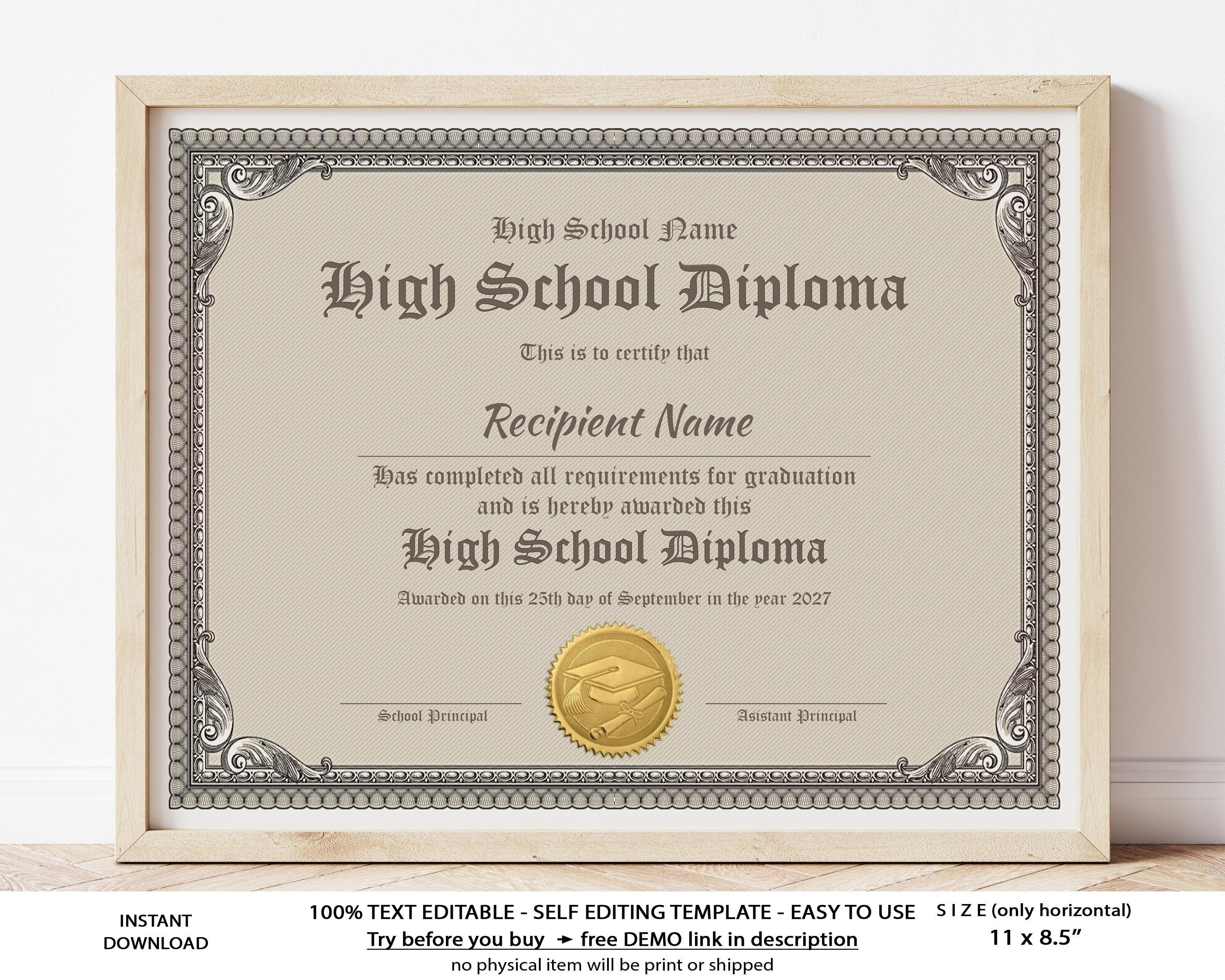 Editable High School Diploma Template Printable Homeschool Etsy Canada